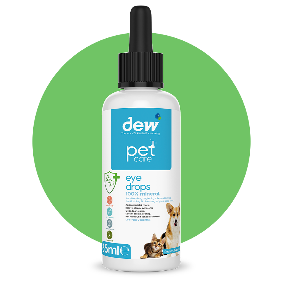 Dew Pet Eye Drops technology is a clinically proven, cleansing antiseptic, making it the perfect solution to use to care for your pets’ eyes. It provides soothing, antimicrobial cleansing, in and around the eyes, including minor cuts and abrasions.